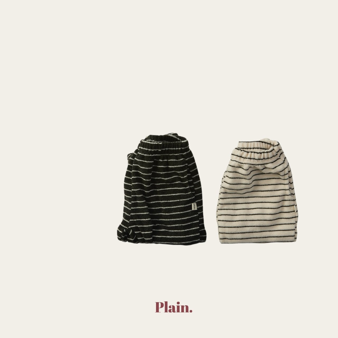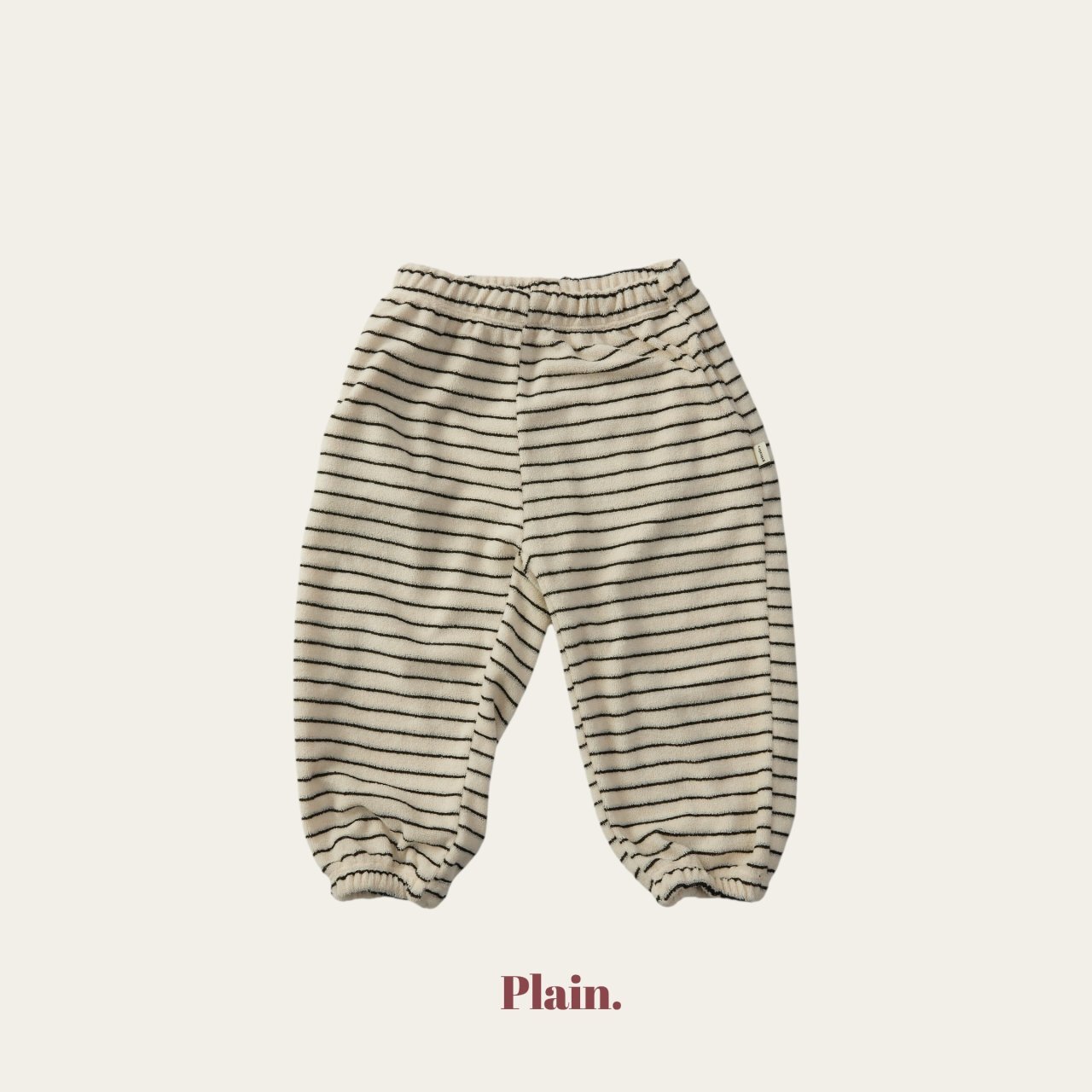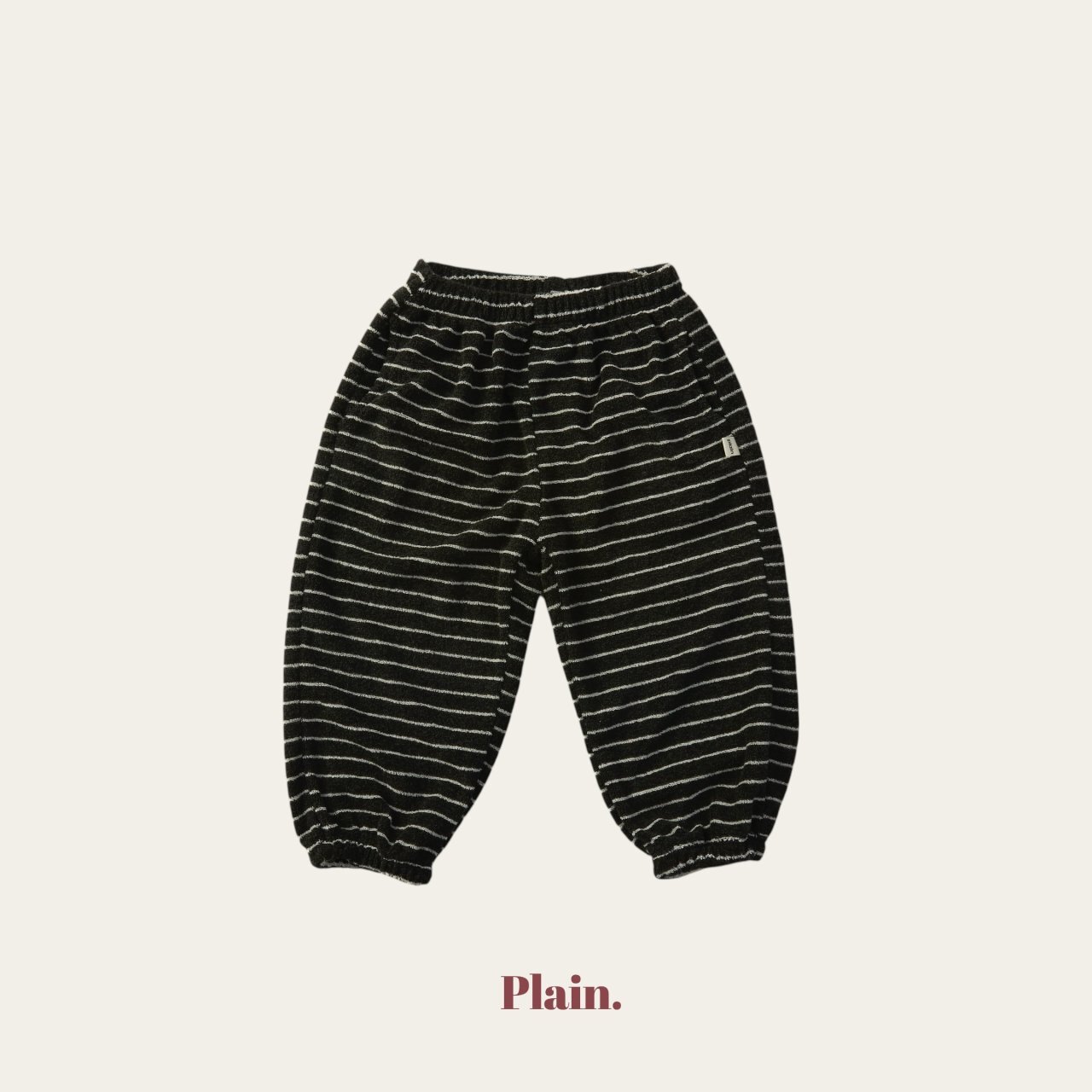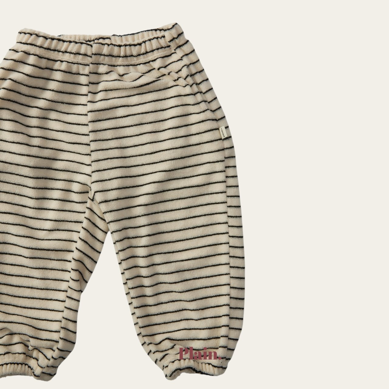 使用少見的條紋毛圈布料製作的慢跑褲