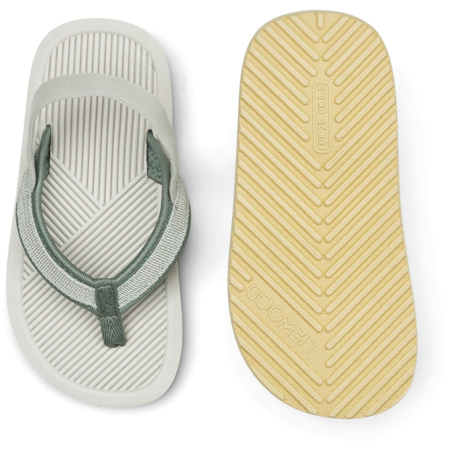 涼鞋的鞋跟周圍有鬆緊帶,因此它們可以留在腳上