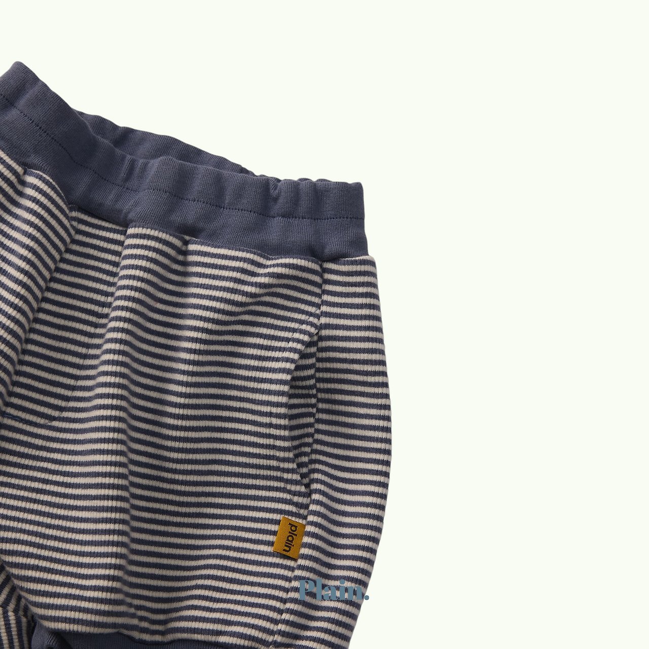 這是一款以酒紅與藍色兩種配色打造的條紋長褲