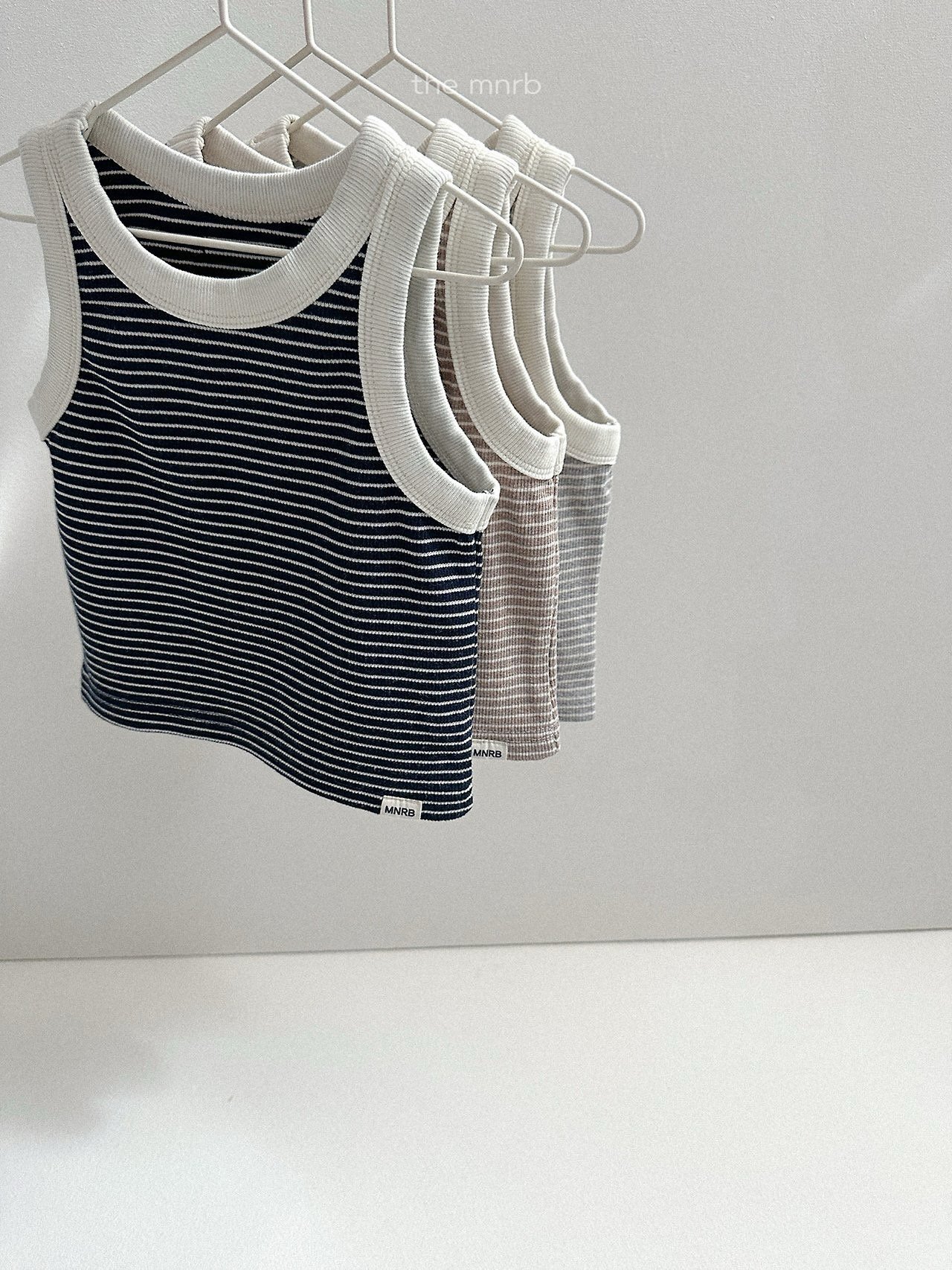 一款帶有細緻條紋的羅紋無袖上衣