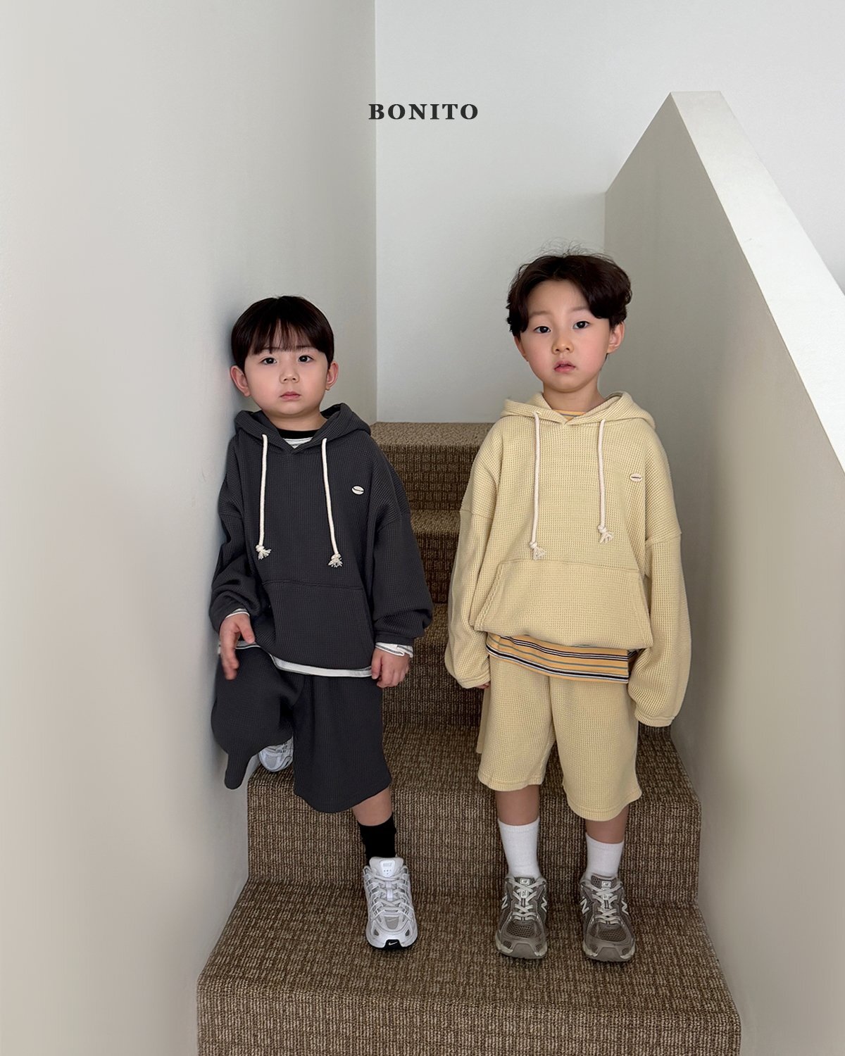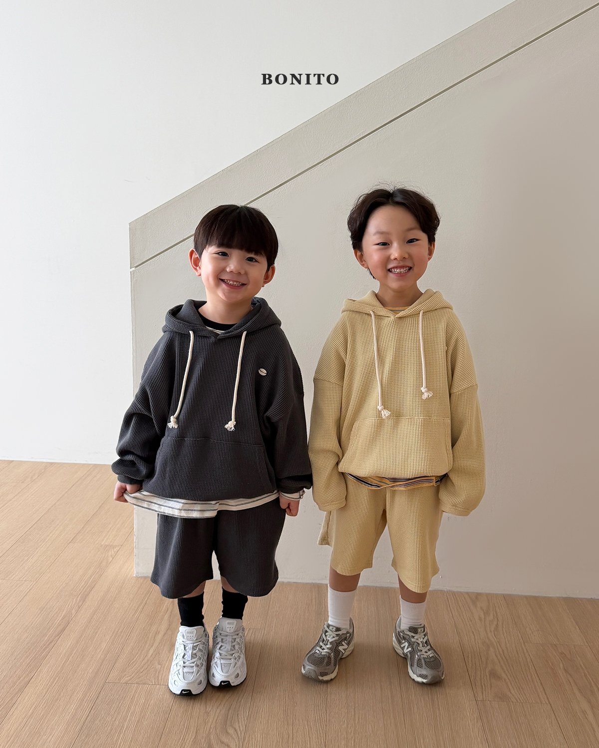 這是一款帶有細緻華夫紋質感的連帽套裝