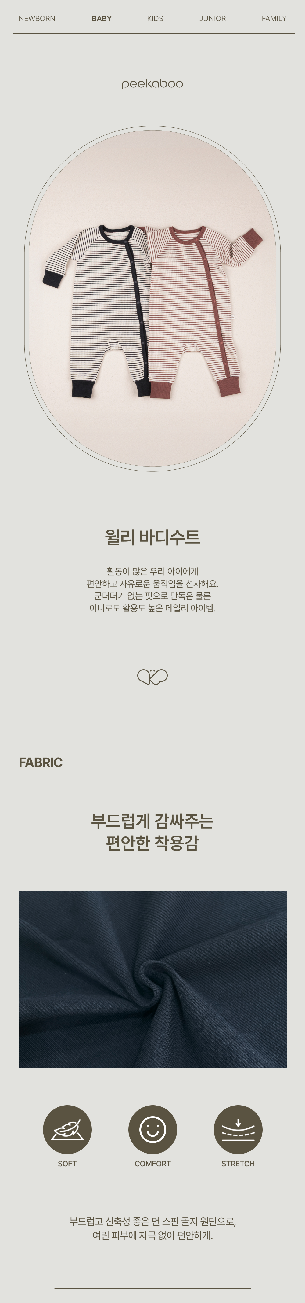 彈性羅紋布料輕盈貼身,即使是好動的孩子也能倍感舒適