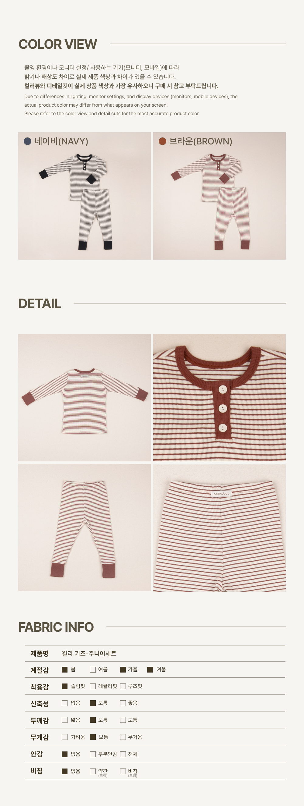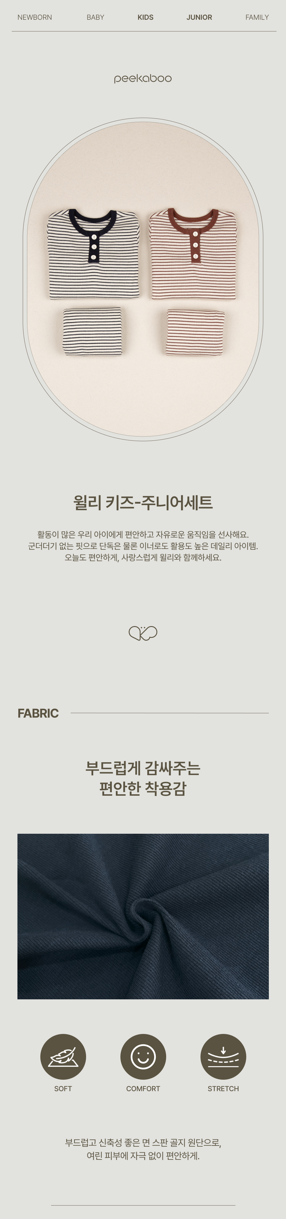 這款 Willy Kids 兒童套裝採用舒緩的條紋圖案